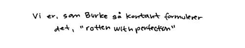 tant formulerer det, “rotten with perfection”: Vi er fordærvet af en trang til at forfine og fuldende vores selvbillede og verdensbillede. Vores fremstilling af verden skal jo gerne blive sammenhængende og troværdig, så det arbejder vi hver især på uden nødvendigvis at ænse hvilke andre perspektiver vi lukker af for.