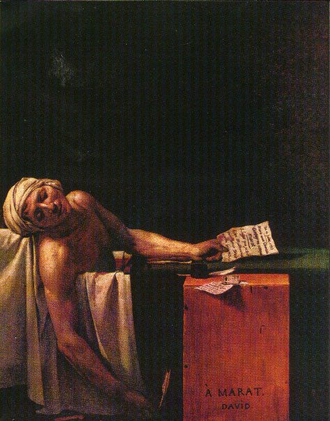 Den døde Marat (1793) bliver ofte betegnet som Davids største og mest fuldkomne maleri. Maleriet er særegent ved at det på samme tid er et unikt kunstværk og et stykke holdningspræget politisk retorik, ja måske endog propaganda.